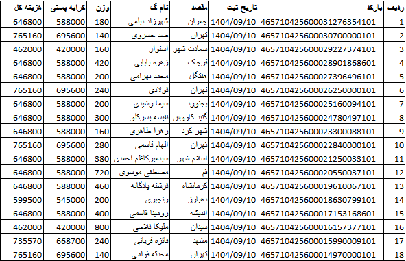 کد رهگیری ها