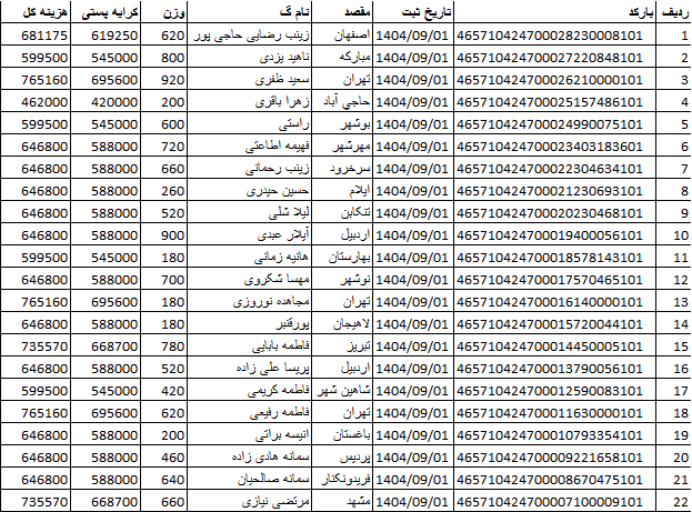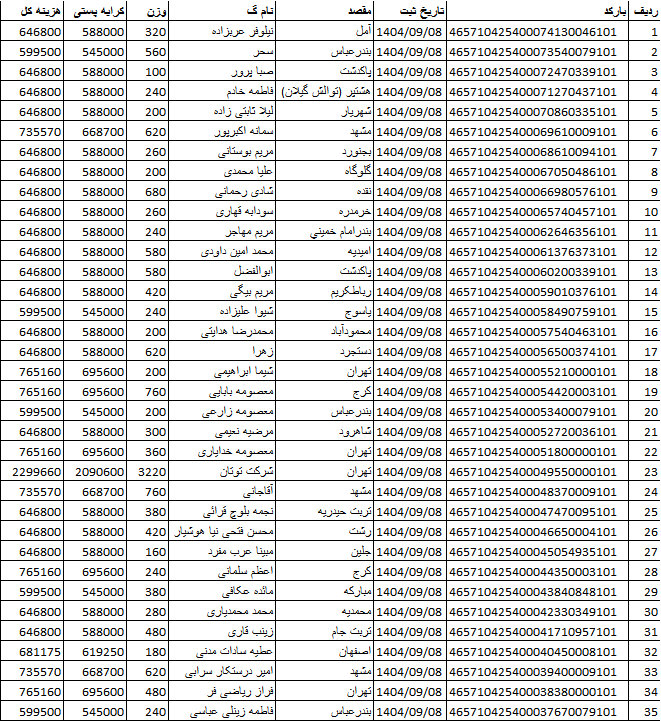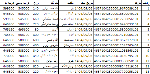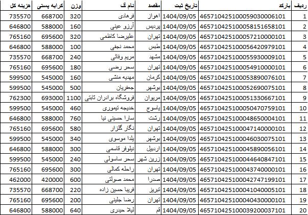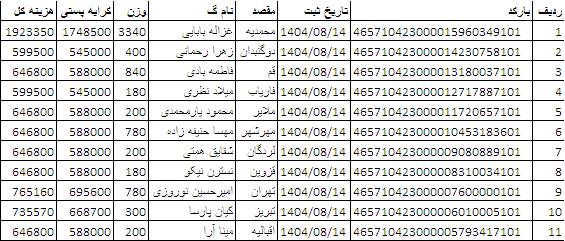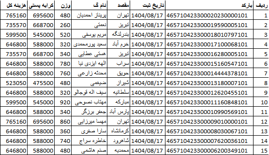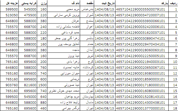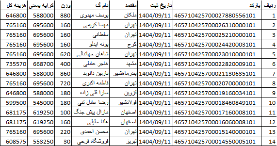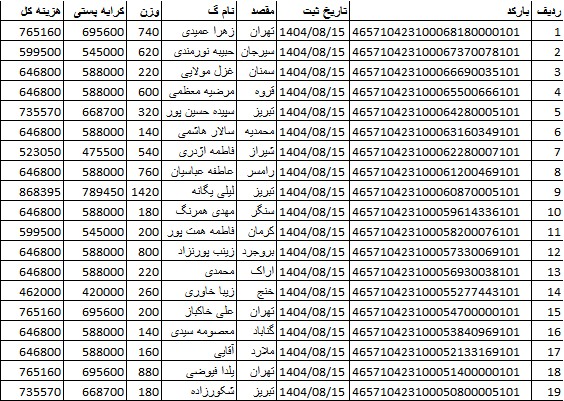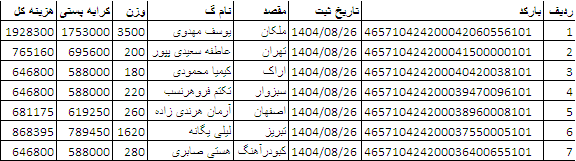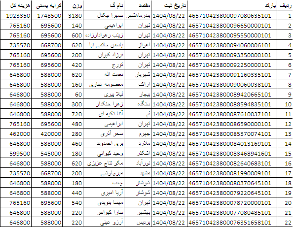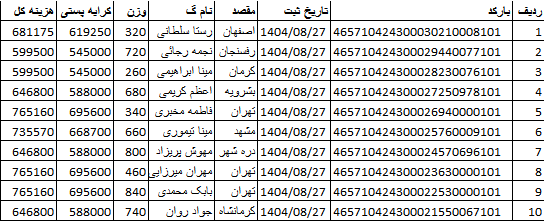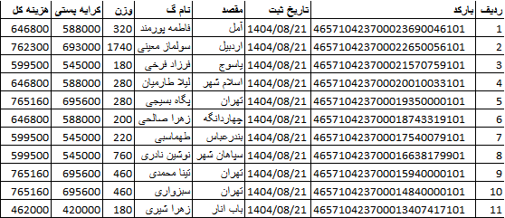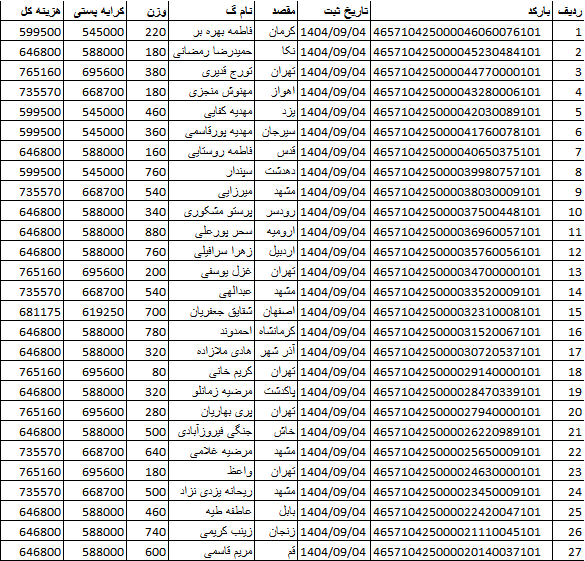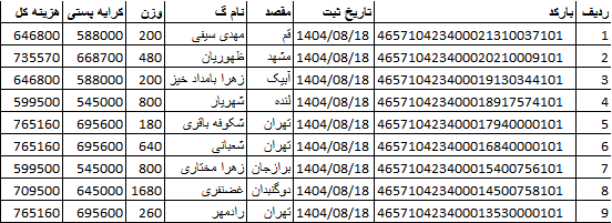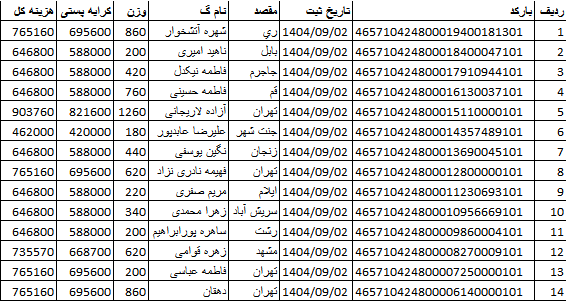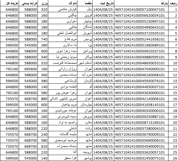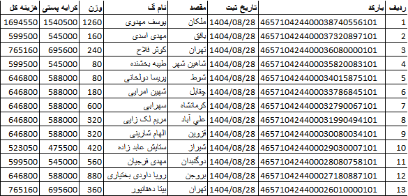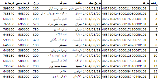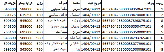 کد رهگیری ها ارسالی فروشگاه سیتی راز