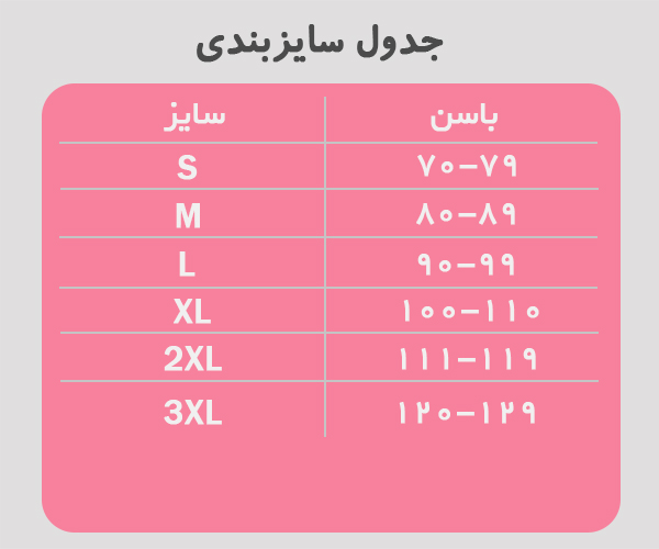 - 3XL: دور شکم 120 تا 129 سانتیمتر